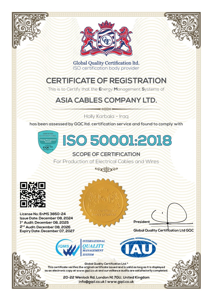 The ISO 50001 certification demonstrates that Asia Cables has implemented a structured and effective energy management system, enabling us to optimize energy performance, reduce energy consumption, and minimize greenhouse gas emissions. By aligning with this international standard, we are contributing to a more sustainable future.